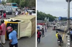 तमिलनाडु: चेन्नई में गिंडी काठीपारा ब्रिज पर रविवार को उस समय अफरा-तफरी का माहौल बन गया जब यहां स्थित साइनेज पोल अचानक चलते वाहनों पर गिर पड़ा। हादसे में एक व्यक्ति की मौत हो गई। वहीं, दो लोग घायल हुए हैं। चेन्नई ट्रैफिक पुलिस के अनुसार हादसे के बाद ब्रिज पर दोनों तरफ ट्रैफिक जाम लग गया। यहां वाहनों की लंबी कतारें लग गई।