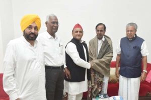 दिल्ली के मुख्यमंत्री अरविंद केजरीवाल, पंजाब के मुख्यमंत्री भगवंत मान, केरल के मुख्यमंत्री पिनाराई विजयन, उत्तर प्रदेश के पूर्व मुख्यमंत्री अखिलेश यादव, भाकपा के राष्ट्रीय महासचिव डी. राजा और अन्य नेताओं ने मुख्यमंत्री के आधिकारिक आवास प्रगति भवन में ब्रेकफास्ट मीटिंग में हिस्सा लिया। नेता बीआरएस की जनसभा में शामिल होने के लिए मंगलवार रात हैदराबाद पहुंचे थे।