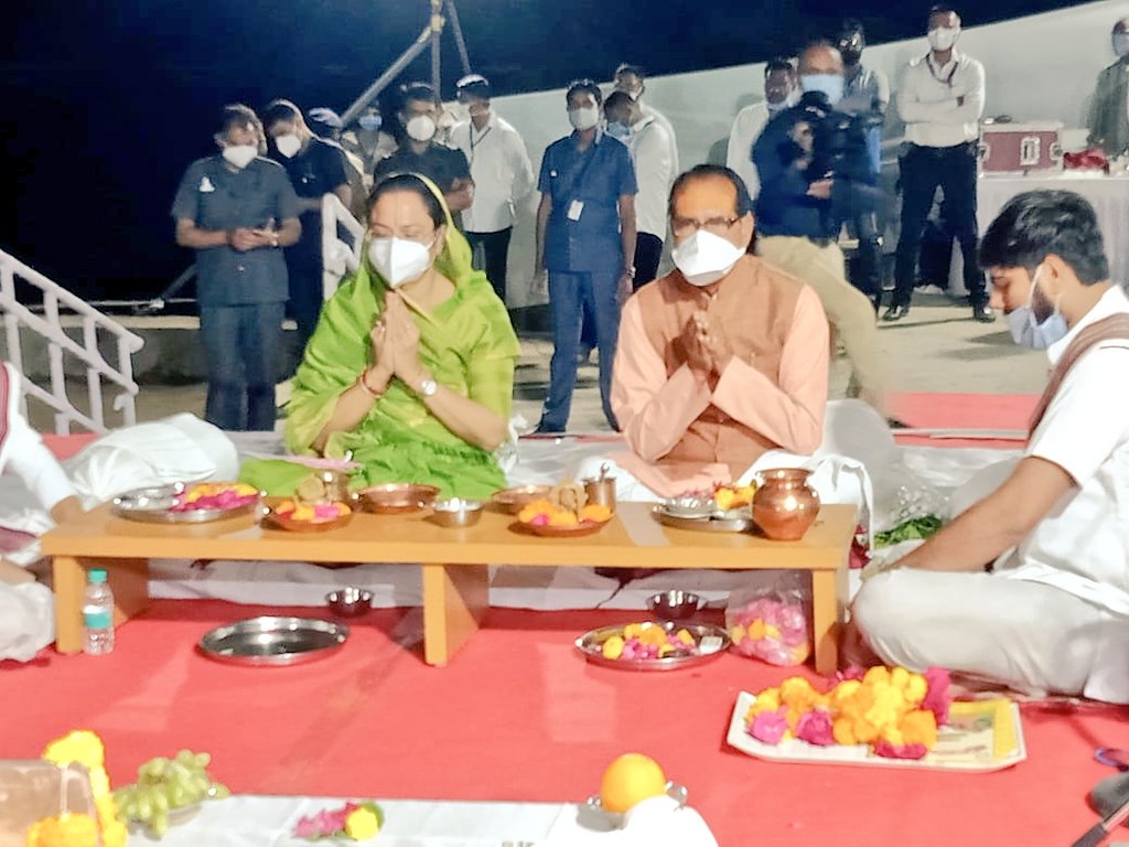 Chief Minister Shivraj ने भरुच में मां नर्मदा और भगवान स्वामीनारायण मंदिर में की पूजा-अर्चना