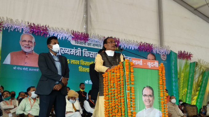 मुख्यमंत्री ने कहा कि प्रधानमंत्री नरेन्द्र मोदी सरकार द्वारा लाए गए तीन कानून किसानों के हित में हैं। ये कानून न केवल मेरे किसान भाइयों के हितों की रक्षा करते हैं बल्कि आर्थिक प्रगति भी सुनिश्चित करते हैं। उन्होंने कहा कि मैं जब कोरोना काल में मुख्यमंत्री बना तो खजाने में बहुत ज्यादा पैसे नहीं थे। तब मैंने यह प्रण किया कि जनकल्याण बंद नहीं होगा। हमने फसल बीमा योजना के 2,200 करोड़ का बकाया प्रीमियम जमा किया। 3,100 करोड़ रुपये किसानों के खातों में भी जमा कराये।