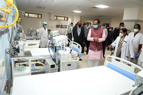 मुख्यमंत्री श्री चौहान ने अस्पताल के नवीन भवन में हाई डेफिशियेन्सी यूनिट का निरीक्षण किया। बच्चों की इस इकाई में 30 बिस्तर की व्यवस्था है। उन्होंने एस.एन.सी.यू. पीडियाट्रिक्स वार्ड और आई.सी.यू. वार्ड का भी निरीक्षण किया। मुख्यमंत्री श्री चौहान ने सामान्य बेड, ऑक्सीजन बेड, आई.सी.यू. बेड, आवश्यक चिकित्सा उपकरणों की उपलब्धता और उनके सही तरीके से कार्य करने के संबंध में जानकारी प्राप्त की। मुख्यमंत्री श्री चौहान ने इसके पूर्व अस्पताल परिसर में निर्मित 35 मीट्रिक टन की रोजाना क्षमता वाले ऑक्सीजन संयंत्र का भी निरीक्षण किया।