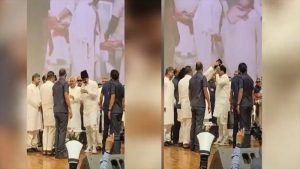 पटना। मुख्यमंत्री नीतीश कुमार (CM Nitish Kumar) आज मदरसा शिक्षकों (Madrasa Teachers) को कार्यक्रम में पहुंचे लेकिन जहां शिक्षकों के एक समूह ने उनका विरोध किया वहीं एक और दृश्य देखने को मिला। कार्यक्रम के दौरान मंत्री जमा खान (Jama Khan) सीएम नीतीश को मुस्लिम टोपी (Muslim Hat) पहनाने लगे, लेकिन नीतीश ने टोपी अपने हाथों में ले लिया और उसे जमा खान को पहना दिया।