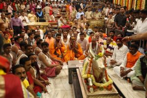उज्जैन। मुख्यमंत्री शिवराज सिंह चौहान ने गत दिवस उज्जैन पहुंचकर भगवान महाकालेश्वर मन्दिर में उत्तम जलवृष्टि हेतु महारूद्र अनुष्ठान किया था। आज मुख्यमंत्री ने महाकाल को धन्यवाद ज्ञापित करते हुए षोड़ोपचार पूजन किया। पूजन में मुख्यमंत्री की धर्मपत्नी साधना सिंह एवं पुत्र कुणाल सिंह चौहान शामिल हुए। गर्भगृह में पं. प्रदीप गुरू, पं. दिलीप गुरू आदि ने पूजन-अर्चन सम्पन्न कराया। तत्पश्चात नन्दी हॉल में पं. घनश्याम पुजारी, पं. प्रदीप गुरू, पं. सत्यनारायण शर्मा सहित लगभग 71 पुजारी-पुरोहितों ने पूजन सम्पन्न कराया। मुख्यमंत्री ने भगवान महाकाल से प्रदेशवासियों के लिये मंगल की कामना की।