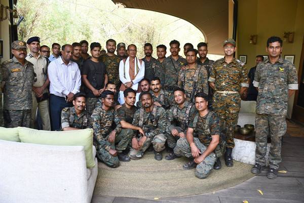 मुख्यमंत्री श्री चौहान ने नक्सल प्रभावित क्षेत्र में सेवाएँ दे रहे हॉक फोर्स के जवानों से मुलाकात कर चर्चा की। मुख्यमंत्री श्री चौहान ने विपरीत परिस्थितियों में भी काम करने में आने वाली समस्याओं की पड़ताल करते हुए बेहतरीन कार्य करने पर जवानों की हौसला अफजाई की। मुख्यमंत्री श्री चौहान ने हॉक फोर्स के जवानों से कहा कि आपकी सेवाएँ सिर्फ नौकरी नहीं बल्कि एक मिशन है, जो देश की आंतरिक सुरक्षा के लिए सौंपा गया महत्वपूर्ण दायित्व है। आप बड़े मिशन के लिए कार्य कर रहे हैं। आपका पराक्रम और समर्पण सराहनीय है। आपके साहस और शौर्य को मैं प्रणाम करता हूँ।