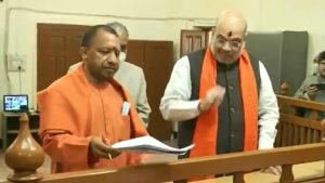 रुद्राभिषेक के बाद योगी ने अपने गुरु ब्रह्मलीन महंत अवैद्यनाथ की प्रतिमा पर माल्यार्पण किया. योगी मंदिर से निकलकर गोरखपुर हवाई अड्डे पहुंचे और वहां उन्होंने केंद्रीय गृह मंत्री अमित शाह की अगवानी की. अमित शाह और केंद्रीय शिक्षा मंत्री धर्मेंद्र प्रधान समेत योगी का काफिला महाराणा प्रताप इंटर कॉलेज में आयोजित सभा स्थल पर पहुंचा, जहां शाह और योगी ने उपस्थित लोगों को संबोधित किया.