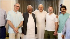 नेशनल कॉन्फ्रेंस व पीडीपी के जम्मू-कश्मीर चुनाव में साथ आने पर नेशनल कॉन्फ्रेंस के अध्यक्ष फारूक अब्दुल्ला ने कहा, “कांग्रेस और हम एक साथ हैं, तारिगामी साहब (सीपीएम के एम.वाई. तारिगामी) भी हमारे साथ हैं। मुझे उम्मीद है कि हमारे लोग हमारे साथ होंगे जिससे हम लोग भारी बहुमत से जीतकर लोगों की बेहतरी के लिए काम कर सकें। कांग्रेस अध्यक्ष मल्लिकार्जुन खड़गे, लोकसभा नेता और कांग्रेस सांसद राहुल गांधी ने नेशनल कॉन्फ्रेंस के अध्यक्ष फारूक अब्दुल्ला और उपाध्यक्ष उमर अब्दुल्ला से श्रीनगर स्थित आवास पर मुलाकात की।