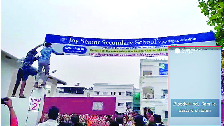 हिन्दुओं के आराध्य भगवान श्रीराम पर अमर्यादित टिप्पणी करने वाले को संस्कारधानी माफ नहीं करेगी जॉय स्कूल के संचालक अखिलेश मेबन की शर्मनाक टिप्पणी पर सब एक स्वर में बोले पुलिस-प्रशासन से मांग आरोपी की गिरफ्तारी हो और जॉय स्कूल की मान्यता रद्द की जाए अभिभावक अपने बच्चों को स्कूल से बाहर निकालें वरना भविष्य […]