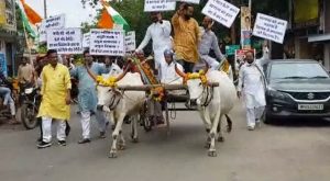 बैलगाड़ी से पहुंचे नेता प्रतिपक्ष दीपक राठौड़ ने आरोप लगाया कि शहर की स्थिति 1990 से आज तक ज्योँं की त्यों है। जिस वजह से वे शहर वासियों को शहर की वास्तविक स्थिति बताना चाहते थे। जिले में सांसद विधायक और एमआईसी भी सत्ता पक्ष बीजेपी की हैं। उसके बावजूद भी शहर में कोई भी विकास कार्य नहीं होने से खण्डवा शहर से गांव बनता जा रहा है। यहां निगम में पैसों की बंदरबाट हो रही है।