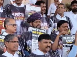 वहीं, विधानसभा के बाहर कांग्रेस विधायकों ने “भजन सरकार होश में आओ, सरकारी जमीनों की चोरी बंद करो” जैसे नारे लगाए और पोस्टर लेकर प्रदर्शन किया। मानसून सत्र में हर दिन किसी न किसी मुद्दे पर कांग्रेस विधायक प्रदर्शन करते दिख रहे हैं, जो सरकार की कार्यप्रणाली और कानून व्यवस्था पर सार्वजनिक असंतोष को उजागर करता है।