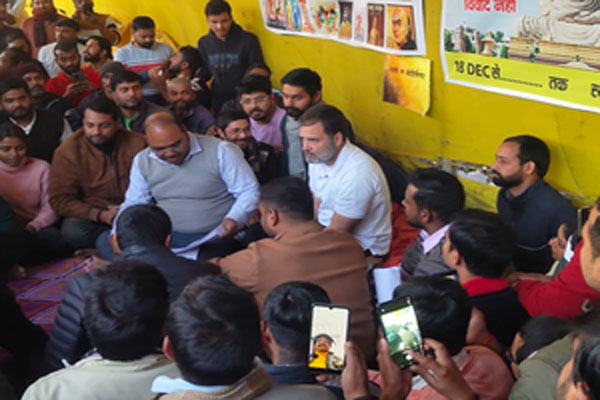 एक दिवसीय बिहार दौरे पर आए राहुल गांधी धरनारत छात्रों के बीच पहुंचे और उनकी बातें सुनीं। कांग्रेस नेता ने छात्रों से कहा, “मैं आपके साथ हूं, आप जहां भी कहेंगे, आपके साथ राहुल गांधी खड़ा मिलेगा।” अभ्यर्थियों ने राहुल गांधी के इस कदम की सराहना की है। कई तस्वीरें और वीडियोज सामने आईं हैं, जिनमें राहुल गांधी धरना स्थल पर छात्रों के साथ बैठकर उनसे बातचीत करते नजर आ रहे हैं। छात्रों ने एक-एक कर अपनी मांगें राहुल गांधी के सामने रखीं। इस मुलाकात को अभ्यर्थी अपनी बड़ी सफलता बता रहे हैं।