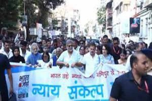 मुंबई । कांग्रेस (Congress) ने मुंबई में (In Mumbai) रविवार को जन न्याय पदयात्रा’ (‘Jan Nyay Padyatra’) निकाली (Taken Out) । मुंबई में राहुल गांधी की भारत जोड़ो नया यात्रा ख़त्म होने के बाद यह यात्रा मणि भवन संग्रहालय से शुरू हुई। यात्रा में कांग्रेस नेता राहुल गांधी, पार्टी महासचिव प्रियंका गांधी वाड्रा और अभिनेत्री स्वरा भास्कर शमिल हुए।