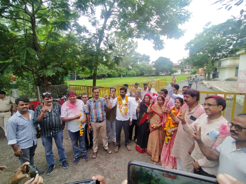 अभी हाल ही में संपन्न हुए त्रिस्तरीय पंचायत चुनाव के अंतर्गत बुधवार को जनपद अध्यक्ष और उपाध्यक्ष के निर्वाचन की प्रक्रिया जनपद पंचायत कार्यालय में अपनाई गई। दोपहर 11 बजे अध्यक्ष पद के लिए प्रारंभ हुई निर्वाचन की प्रक्रिया के दौरान कांग्रेस समर्थित उम्मीदवार श्रीमती नीतू देवेंद्र सिंह रघुवंशी दिप्पू ने अपना नामांकन जमा किया जबकि भाजपा द्वारा समर्थित श्रीमती मीना रामकृष्ण रघुवंशी ने अपना नामांकन दाखिल किया। अध्यक्ष पद के लिए नामांकन पत्र जमा होने के बाद कांग्रेस भाजपा समर्थित जनपद सदस्य एकजुट होकर अपने अपने पार्टी नेताओं के साथ मतदान के लिए पहुंचे। वोटिंग के बाद दोपहर 1 बजे कांग्रेस समर्थित नीतू देवेंद्र सिंह रघुवंशी दिप्पू के एक वोट से जीतने की खबर बाहर आई तो जनपद पंचायत कार्यालय के सामने एकत्रित उनके हजारों समर्थकों का हुजूम खुशी से झूम उठा। जनपद कार्यालय के सामने हजारों की संख्या में नई नई भगवा तोलिया डालें लोग परिणाम आने के बाद तोलिया हटाकर कांग्रेस के जश्न में शामिल हो गए जिसको लेकर यह नजारा देख रहे लोग कई तरह की चर्चा करते नजर आए।