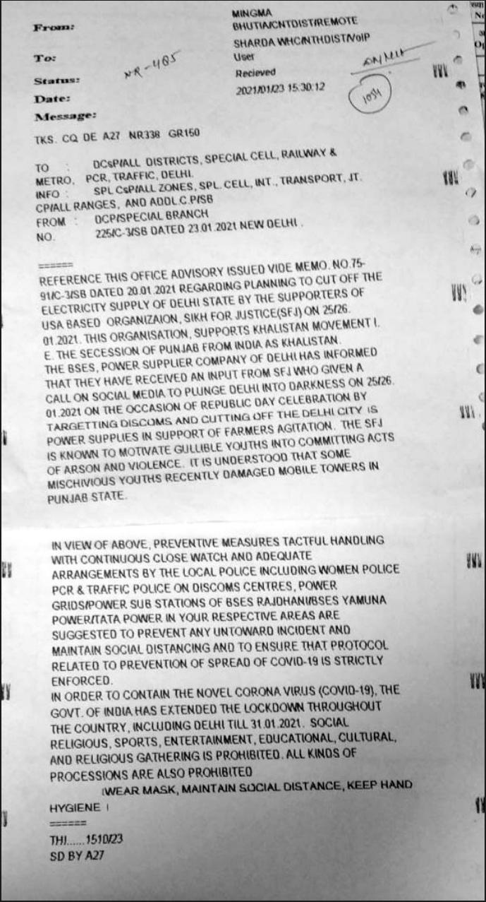 नई दिल्ली । गणतंत्र दिवस पर दिल्ली में बिजली काटने की साजिश का इनपुट मिला है. खालिस्तानी समर्थक संस्था सिख फॉर जस्टिस ने सोशल मीडिया पर 25 और 26 जनवरी को पावर कट करने की धमकी दी है. इस बाबत BSES को भी पिछले कई दिनों से जानकारी मिल रही थी.