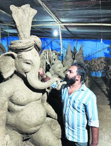 उज्जैन। गणेशोत्सव में भले ही फिलहाल ढाई महीने का वक्त हो, लेकिन उत्साह चरम पर है। तीन महीने पहले से ही शहर के मूर्तिकारों को प्रतिमाओं के ऑर्डर मिलने लगे हैं। इस साल प्रतिमाएं पिछले साल की तुलना में ज्यादा बनेंगी, वहीं इन मिट्टी की प्रतिमाओं के निर्माण के लिए बंगाल से आने वाले मूर्तिकार भी दोगुने हो गए हैं। बंगाली कॉलोनी स्थित कारखानों में घास का बेस बनाने के बाद प्रतिमाओं पर मिट्टी चढ़ाने का काम भी शुरू हो गया है। हर साल एक से डेढ़ महीने पहले मिलने वाले ऑर्डर इस साल तीन महीने पहले से मिलने लगे हैं, जिससे मूर्ति बनाने वाले कारखानों में रौनक भी समय से पहले नजर आने लगी है। पिछले 15 दिन से ज्यादा समय से बंगाली मूर्तिकार मिट्टी की गणेश प्रतिमाओं का निर्माण करना शुरू कर चुके हैं। मूर्तिकार ने बताया कि इस साल 500 से ज्यादा बड़ी गणेश प्रतिमाएं और 2 हजार छोटी प्रतिमाएं बनाने का लक्ष्य है। हर साल बड़ी प्रतिमाएं करीब 300 ही बनती रही हैं। उल्लास और माहौल को देखते हुए इस साल बंगाल से मूर्तिकार भी हर साल से दोगुने आए हैं। उल्लेखनीय है कि प्रतिमाओं के निर्माण के लिए हर साल बंगाल से मूर्तिकार आते हैं और ये सरस्वती पूजन (बसंत पंचमी) के लिए बनने वाली प्रतिमाओं के निर्माण के लिए जनवरी तक यहीं रूकते हैं।