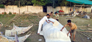 उज्जैन। विजयादशमी पर्व पर दशहरा मैदान तथा दत्त अखाड़ा क्षेत्र के अलावा अन्य स्थानों पर रावण दहन होगा तथा इसके लिए कार्य शुरू हो चुका है। बाहर से भी कलाकार रावण के पुतले का निर्माण करने आए हैं।