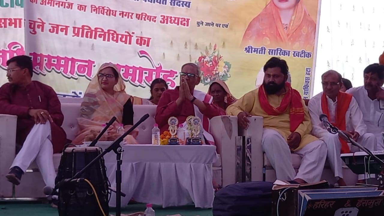 कार्यक्रम में पूर्व मंत्री डॉ रामकृष्ण कुसमरिया, दमोह विधायक अजय टन्डन, जिला पंचायत दमोह के अध्यक्ष गौरव पटेल, उपाध्यक्ष डॉ मंजू देवलिया, जिला पंचायत दमोह के पूर्व अध्यक्ष शिवचरण पटेल, पटेरा जनपद के पूर्व अध्यक्ष बद्री पटेल, विभिन्न मंडलों के भाजपा अध्यक्षए युवा मोर्चा अध्यक्ष सहित जिला पंचायत और जनपद पंचायत सदस्यों सहित हटा विधानसभा और दमोह जिले की राजनीति में अहम भूमिका निभाने वाले सक्रिय चेहरों की उपस्थिति ने मिशन 2023 को लेकर उमादेवी खटीक की दावेदारी लगभग तय कर दी। वही कार्यक्रम में हटा विधायक पी एल तंतवाय की अनुपस्थिति चर्चा का विषय बनी रही हालांकि उनकी प्रतिनिधि के रूप में पत्नी रामकली तंतुवाय मंच पर बैठे नजर आई। अमानगंज नगर परिषद अध्यक्ष श्रीमती सरिता का केला से तुलादान किया गया। मंच से लोगों को संबोधित करते हुए डॉ रामकृष्ण कुसमरिया ने उमादेवी खटीक को स्वयं के द्वारा विधायक बनाए जाने के आशीर्वाद और मंत्री पद तक पहुंचने की अपनी पूर्व इच्छा भी जाहिर की मंच पर हटा के राम गोपाल जी मंदिरए बालाजी सरकार के महंत सहित वरिष्ठ साहित्यकार डॉ श्यामसुंदर दुबे के अलावा नगर पालिका हटा का नवनिर्वाचित अमला भी मौजूद नजर आया कार्यक्रम में सभी जनप्रतिनिधियों का सम्मान किया गया वहीं स्थानीय पत्रकारों सहित विभिन्न क्षेत्रों में योगदान देने वाले लोगों का भी मंच से सम्मान किया।
