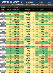 स्वास्थ्य मंत्रालय के मुताबिक, देश में अब तक 1 करोड़ 9 लाख 73 हजार 260 लोग रिकवर हो चुके हैं, जबकि इस समय 2 लाख 2 हजार 22 एक्टिव केस हैं। पिछले 24 घंटे में हुई मौतों के बाद देश में मृतकों की संख्या बढ़कर अब 1 लाख 58 हजार 446 हो गई है। आईसीएमआर के मुताबिक, देश में पिछले 24 घंटे के अंदर 8,40,635 कोरोना जांच की गई है।