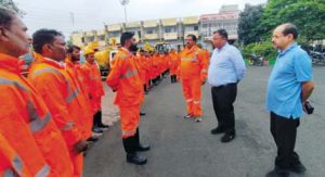 इंदौर। नगर निगम ने आपदा प्रबंधन के लिए करीब 200 कर्मचारियों की टीमें बनाई हैं, जो एक जैसी ड्रेस में रहेेगी और एक सूचना पर तत्काल मौके पर पहुंचेंगी। आज निगम कमिश्नर ने टीमों के बारे में तमाम जानकारी ली और टीमों में शामिल कर्मचारियों से बातचीत भी की। आज सुबह नेहरू स्टेडियम में टीम में शामिल सदस्यों को फुल ड्रेस में बुलवाया गया था निगम द्वारा टीम में शामिल सभी कर्मचारियों को गमबूट, हेलमेट, ग्लव्स, सब्बल, गैती फावड़ा, टार्च, रस्सी गाडिय़ा उपलब्ध कराई गई है। यह टीमें दिन के साथ साथ रात्रिकालीन शिफ्ट में भी एक्टिव रहेगी। टीमों का मुख्य ठिकाना वर्कशॉप रहेगा और एक सूचना पर आपदा प्रबंधन के कार्यों के लिए टीमें मौके पर तत्काल भेजी जाएगी।