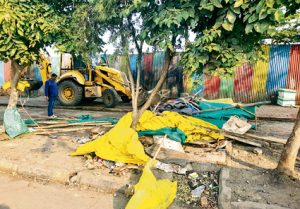 निगम स्वास्थ्य विभाग के अधिकारियों और मीट विभाग के अधिकारियों की टीम ने आज सुबह एमआर 9 के चौराहे पर फुटपाथों पर लगी दस से पंद्रह दुकानों को हटाने की कार्रवाई की। यहां कई लोगों ने फुटपाथ पर ही शेड और बरसाती डालकर दुकानें शुरू कर दी थीं। निगम की कार्रवाई के दौरान कुछ लोग वहां विवाद भी करने लगे थे। टीम ने इसके बाद रोबोट चौराहा पहुंचकर वहां भी आसपास के हिस्सों में लगी मांस की दुकानों पर कार्रवाई की। कई लोग दुकानों का सामान उठाकर भागने लगे। निगम ने जेसीबी की मदद से वहां किए गए अस्थायी कब्जे तोड़ दिए। उक्त क्षेत्रों में लगातार मुहिम चलाई जाएगी।