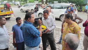 इंदौर। नगर निगम आयुक्त हर्षिका सिंह (Municipal Commissioner Harshika Singh) ने सोमवार को निरीक्षण के दौरान वर्कशॉप विभाग के प्रभारी मनीष पांडे (Manish Pandey in charge of workshop department) द्वारा मैरियट होटल (Marriott Hotel) के सामने सीवरेज लाइन में चौक होने पर कैमरा लाइन के अंदर डाल कर लाइन के चौक होने की स्थिति स्क्रीन पर पता करने संबंधी डेमो दिया।