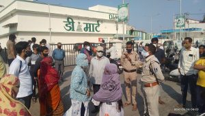 डी-मार्ट के बाहर खड़े लोगों को हटाया
