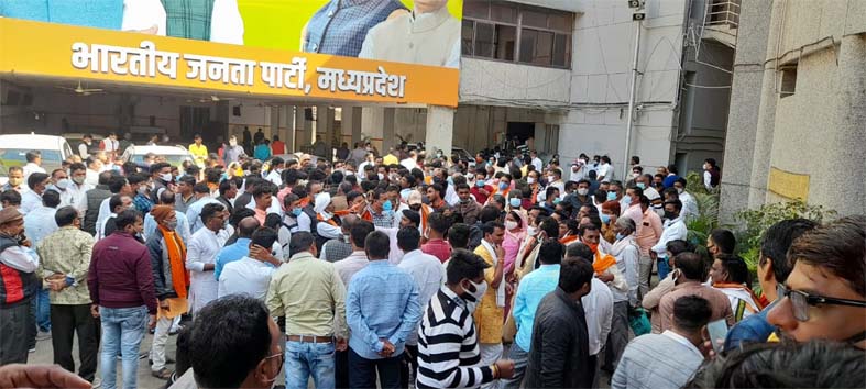 भोपाल। राज्य शासन द्वारा पिछले महीने नियुक्त निगम-मंडलों के अध्यक्ष और उपाध्यक्ष पदभार ग्रहण करने के लिए समर्थकों की भीड़ के साथ भोपाल पहुंच रहे हैं। वे प्रदेश भाजपा मुख्यालय से पदभार ग्रहण करने के लिए संबंधित कार्यालय जाते हैं। सोमवार को पर्यटन निगम के अध्यक्ष विनोद गोटिया, , उपाध्यक्ष नरेंद्र सिंह तोमर, महिला वित्त एवं विकास निगम की अध्यक्ष अमिता चपरा, राज्य कृषि विपणन बोर्ड की उपाध्यक्ष सुश्री मंजू दादू, स्टेट एग्रो के अध्यक्ष एदल सिंह कंषाना, अनुसूचित जाति वित्त एवं विकास निगम में अध्यक्ष पद पर सावन सोनकर और उपाध्यक्ष पद पर रमेश खटीक ने पदभार ग्रहण किया था। इससे पहले ये सभी समर्थकों की भीड़ के साथ प्रदेश भाजपा कार्यालय पहुंचे थे। जहां वरिष्ठ नेताओं की मौजूदगी में कोरोना गाइडलाइन की जमकर धज्जियां उड़ी।