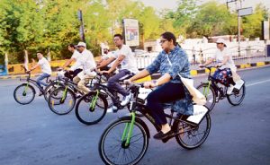 नागरिकों की सहभागिता के लिए हुई रैली में निगमायुक्त, अपर आयुक्त और स्वास्थ्य प्रभारी ने भी चलाई साइकिल