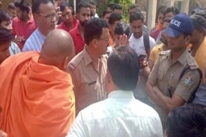भारती उसी जगह हनुमान चालीसा का पाठ करने पर अड़े थे जहां पिछले दिनों बवाल हुआ था। भारी संख्या में ग्रामीणों को अपने साथ लेकर तहसील की ओर बढ़ते स्वामी दिनेश आनंद भारती को पुलिस ने समझाने का प्रयास किया, लेकिन वह नहीं माने।