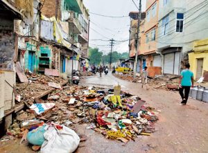 नहीं हटाया मलबा, राजबाड़ा के आसपास कीचड़ से पटीं सडक़ें
