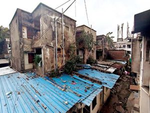 जर्जर भवन के आसपास अतिक्रमण और अवैध निर्माण