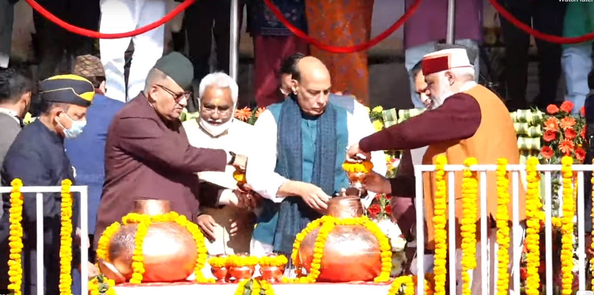 कार्यक्रम में प्रदेश के मुख्यमंत्री पुष्कर सिंह धामी, केंद्रीय रक्षा राज्य मंत्री अजय भट्ट, भाजपा प्रदेश अध्यक्ष मदन कौशिक, मंत्री गणेश जोशी, भाजपा नेता ज्योति गैरोला समेत तमाम विशिष्टजन उपस्थित थे। इससे पूर्व मुख्यमंत्री धामी ने जौलीग्रांट एयरपोर्ट पर रक्षामंत्री राजनाथ सिंह के पहुंचने पर स्वागत किया।