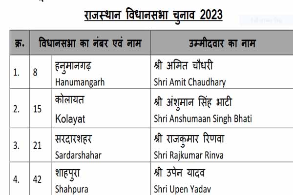 • राजस्थान में बीजेपी ने 15 उम्मीदवार घोषित किए - अशोक परनामी की जगह रवि नैयर को टिकट दिया
