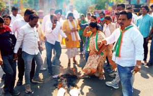 इंदौर। प्रदेश के मंत्री विजय शाह महिला एवं सेना को लेकर दिए गए बयान के बाद चौतरफा घिर गए हैं। हालांकि उन्होंने माफी भी मांग ली है, लेकिन कांग्रेस इस मुद्दे को ठंडा नहीं करना चाहती है। मामला दिल्ली तक पहुंचने के बाद राष्ट्रीय अध्यक्ष मल्लिकार्जुन खडग़े ने भी ऐसे मंत्री को हटाने की मांग की है। आज शहर में रीगल तिराहे पर महिला कांग्रेस ने भी इसको लेकर जोरदार प्रदर्शन किया और मंत्री का पुतला फूंका। शहर अध्यक्ष सुरजीत चड्ढा, महिला कांग्रेस अध्यक्ष सोनिला मिमरोट के साथ मंजु शर्मा, मोना बेथेरा, कविता शुक्ला, आशा मिमरोट सहित बादशाह मिमरोट, अरविंद विश्वकर्मा, पुष्पराज राठौर ने महिलाओं के अपमान को लेकर पहले पुतले पर अपना गुस्सा निकाला और बाद में पुतले को फूंक डाला।