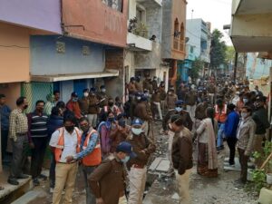 – एक गली तो ऐसी कि पूरी गली ही पुलिसकर्मियों और निगम के फौजपाटे से भर गई