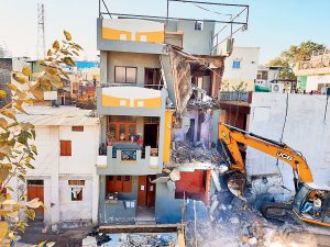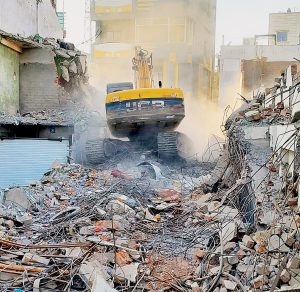 इन्दौर। दो दिन की छुट्टी के बाद आज नगर निगम, पुलिस विभाग और प्रशासन का अमला फिर रावजी बाजार क्षेत्र में पहुंचा और गोपी नेमा के यहां हुए हमले के आरोपी मनोहर वर्मा और क्षेत्र के निगरानी गुंडे अरुण वर्मा के मकान को ढहाने की कार्रवाई शुरू की। तीन मंजिला इस मकान को ढहाने के पहले वहां रखा सारा सामान हटाया गया और पोकलेन जाने की जगह नहीं होने से पूर्व में तोड़े गए वर्मा बंधुओं के मकान को और तोडक़र वहां से रास्ता बनाकर पोकलेन मकान तक भेजी गई। परिवार के कई लोग टूटता मकान देख आसपास की छतों पर खड़े होकर रो रहे थे। पूर्व में भी निगम ने हाथीपाला मेनरोड पर वर्मा बंधुओं के मकान को ढहाया था।