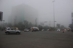 इंदौर। शहर में पिछले कुछ दिनों से बिगड़े मौसम में अब कोहरा भी जुड़ गया है। आज सुबह शहर कोहरे की चादर ओढ़े नजर आया। कोहरा इतना घना था कि आमतौर पर सुबह दो से ढाई हजार मीटर तक रहने वाली दृश्यता घटकर सिर्फ 400 मीटर रह