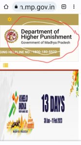 भोपाल। मप्र सरकार के कुछ विभाग डिजिटलाइजेशन को लेकर कितने संवेदनशील हैं, इसका अंदाजा उच्च शिक्षा विभाग के पोर्टल पर विभाग के नाम से लगाया जा सकता है। पोर्टल पर विभाग का नाम ‘डिपार्टमेंट ऑफ हायर पनिशमेंटÓ लिख दिया है। जबकि सरकार में ऐसा कोई विभाग ही नहीं है। हालांकि गलती सामने आने के बाद अफसरों ने इसे सुधरवा लिया है। साथ ही तर्क दिया कि साइट अभी अंडर कन्स्ट्रक्शन है। एमपीएसईडीसी इस काम को कर रही है।