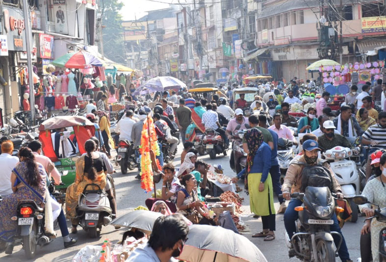जबलपुर। कोरोना संक्रमण की रफ्तार कम होने के बाद मार्केट में बूम नजर आ रहा है। लोग बेफ्रिक होकर मार्केट में खरीदी करने निकल रहे है। जहां पिछले मर्तबा कोरोना के कारण मार्केट धड़ाम से नीचे गिरा था तो वहीं इस मर्तबा मार्केट में अरबों रुपयों की खरीद फरोख्त होगी। कल धनतेरस होने के कारण बाजार में बूम रहेगा, जिसको लेकर प्रशासन भी मुस्तैद है। भीड़ भाड़ वाले क्षेत्रों में पुलिस जवानों की तैनाती की गई है, ताकि लोगों को किसी प्रकार की समस्या न हो, हालांकि बाजार में पिछले एक हफ्ते से लोग की खरीददारी जारी है।