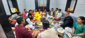 महिदपुर। महाशिवरात्रि के पावन पर्व पर महिदपुर क्षैत्र के ग्राम धुलेट स्थित सुप्रसिद्ध धुर्जटेश्वर महादेव का रात्रिकालीन पारम्परिक पूजन आयोजित किया गया। आचार्य डॉ. गिरीश जोशी के आचार्यत्व में विद्वान ब्राह्मणों द्वारा नमक चमक विधि द्वारा एकादशनी रुद्र के पाठ की आवृत्ति की गई। दूध, दही, शहद, गन्ना रस, नारियल पानी, विविध फलों के रस सहित, पंचामृत से महादेव का अभिषेक किया गया। ब्रह्म मुहूर्त में महादेव का पंचामृत स्नान कर श्रंृगार के साथ सहरा सजाकर महाआरती की गई। इसके पश्चात मंदिर के प्रमुख पुजारी महंत राजेन्द्र भारती द्वारा ब्राह्मण आचार्यों को श्रीफल भेंट कर सम्मान किया गया।