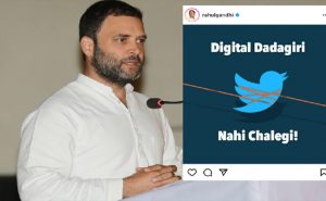 नई दिल्ली। कांग्रेस के पूर्व अध्यक्ष राहुल गांधी का हाल ही में ट्विटर अकाउंट लॉक हुआ था और कुछ समय के लिए ब्लू टिक भी हट गया था जिसके बाद से ही बवाल मचा हुआ है। राहुल गांधी का कहना है कि मोदी सरकार संसद में बोलने नहीं देती है और सोशल मीडिया पर कुछ बोलने पर अकाउंट ब्लॉक करा देती है। राहुल गांधी ने अपने इंस्टाग्राम अकाउंट से एक ग्राफिक्स भी शेयर किया है जिसमें ट्विटर के लोगो को रस्सियों से बांधा गया है और कैप्शन लिखा है ‘डिजिटल दादागिरी नहीं चलेगी’।