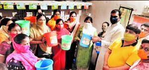 संत नगर। महात्मा गांधी की जयंती के अवसर पर उनके एवं देश के प्रधानमंत्री नरेंद्र मोदी के स्वच्छ भारत के सपने को साकार करते हुए भाजपा नेता राहुल राजपूत के नेतृत्व में वार्ड क्रमांक 4 स्थित सीआरपी एवं फाटक रोड की आंगनबाड़ी केंद्र पर महिलाओं को स्वच्छता कंटेनर बांटकर स्वच्छता का संकल्प दिलाया गया। राजपूत ने कहा हम संकल्प लें कि हम अपना घर और शहर स्वच्छ रखेंगे तभी देश स्वच्छ होगा ,उन्होंने बेटी बचाओ एवं बेटी पढ़ाओ का भी संकल्प सभी महिलाओं को दिलाया इस अवसर पर पंडित वृंदावन गर्ग, राहुल अबोलें,जगदीश मेहरचंदानी, कला रजक, पुष्पा उपाध्याय ,इंदिरा कुरे, नितिन तोतलानी, हेतराम विदुआ, नीरज अलवानी, अमित मालवीय आदि मौजूद थे।