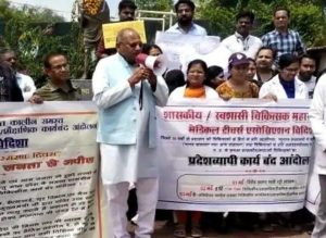विदिशा। अपनी मांगों को लेकर आंदोलन कर रहे सरकारी डॉक्टर आज से हड़ताल पर चले गए। डॉक्टरों ने मेडिकल कॉलेज से एक रैली निकाली जिसमें सरकारी हॉस्पिटल के डॉक्टर शामिल हुए जो नींद आए चौक नींद ताल चौराहे पहुंची। यहां पर कांग्रेस विधायक शशांक भार्गव ने डॉक्टरों की हड़ताल को जायज ठहराते हुए उनको अपना समर्थन दिया। कांग्रेस की सरकार बनने पर डॉक्टरों की सारी मांगे मानने का वादा किया है।