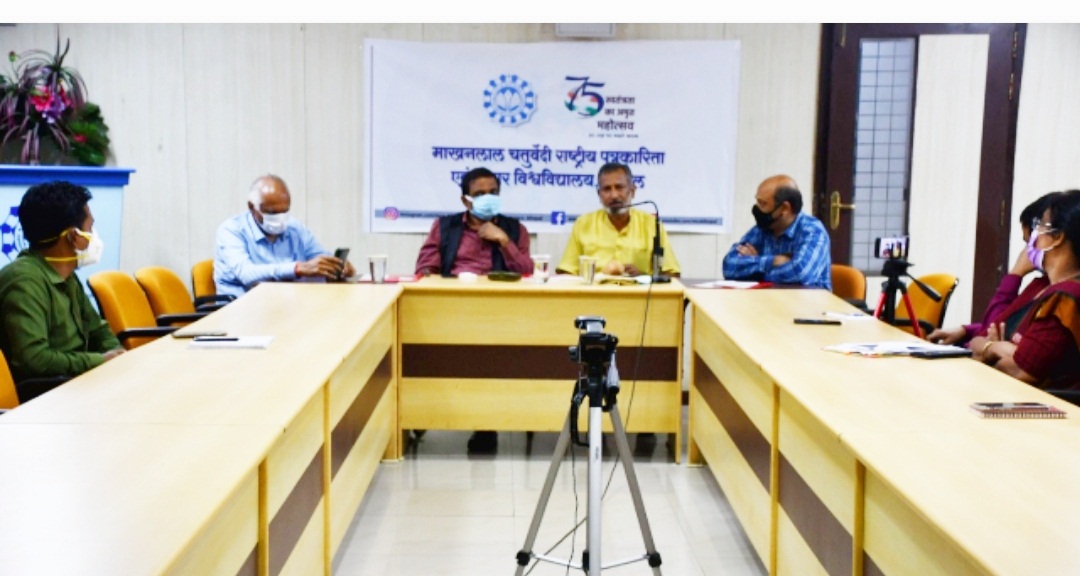 कार्यक्रम की अध्यक्षता कर रहे कुलपति प्रो. केजी सुरेश ने कहा कि डाक्युमेंट्री फिल्म निर्माण के लिए हमें ऐसे विषयों का चयन करना चाहिए, जो समाज को प्रेरणा दें। डाक्युमेंट्री फिल्म निर्माण एक गंभीर काम है। इसके लिए अध्ययन और सामाजिक दृष्टि चाहिए। फिल्म के माध्यम से हम समाज को एक सार्थक दिशा दे सकते हैं। उन्होंने कहा कि डाक्युमेंट्री फिल्में समाज का प्रबोधन करती हैं। प्रो. केजी सुरेश ने कहा कि भोपाल में 18 से 20 फरवरी, 2022 को चित्र भारती राष्ट्रीय शॉर्ट फिल्मोत्सव का आयोजन होना है। इस फिल्मोत्सव में अपनी फिल्में 30 नवंबर तक भेजी जा सकती हैं। डॉक्युमेंट्री फिल्म निर्माताओं के साथ ही पत्रकारिता एवं संचार क्षेत्र के विद्यार्थियों को इस फिल्मोत्सव में बढ़-चढ़कर भाग लेना चाहिए। कार्यक्रम का आयोजन विश्वविद्यालय के विज्ञापन एवं जनसंपर्क विभाग की ओर से किया गया। कार्यक्रम का संचालन एवं समन्वयन विभाग के अध्यक्ष प्रो. पवित्र श्रीवास्तव ने किया। आभार ज्ञापन कुलसचिव प्रो. अविनाश वाजपेयी ने किया। कार्यक्रम में शिक्षकों के साथ विद्यार्थी भी जुड़े। फिल्म निर्माता श्री अशोक शरण ने इस अवसर पर विद्यार्थियों की जिज्ञासाओं का भी समाधान किया।