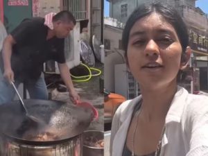 इंस्टाग्राम यूजर गरिमा बक्शी (@wanderingwithpaint) एक ट्रैवलर हैं. सोशल मीडिया प्लेटफॉर्म पर उन्हें 1 लाख से ज्यादा लोग फॉलो करते हैं. हाल ही में उन्होंने एक वीडियो पोस्ट किया है, जिसमें वो चीन की सड़कों पर घूम रही हैं. उनके साथ उनकी एक चीनी सहेली भी है जो उन्हें हर चीज के बारे में बता रही है. अचानक गरिमा को खुलेआम रोड पर एक शख्स मीट बनाता नजर आ रहा है.