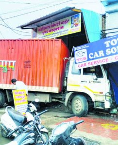इंदौर। गांधी नगर (Gandhi Nagar) क्षेत्र में एक बेकाबू हुए कंटेनर (Container) ने पहले तो एक एक्टिवा (Activa) सवार को टक्कर मारी, उसके बाद दुकानों में जा घुसा, जिससे तीन दुकानों (Shops) के अगले हिस्से तहस-नहस हो गए। जिन दुकानों में नुकसान हुआ उनमें एक प्रापर्टी ब्रोकर (Property Brokers) का ऑफिस, एक कार सर्विसिंग की दुकान शामिल है। कंटेनर का ड्राइवर शराब पीए हुए था। उसे लोगों ने कंटेनर से उतारकर पुलिस को सौंपा।