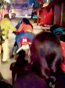पुलिस के दो जवान भी आए, लेकिन बोले की महिला पुलिस बल नहीं है, इसके चलते वे जाने लगे। इसी बीच एक बाइक वाला वहां से गुजरा तो युवती उसकी बाइक पर जबरन बैठ गई। एक रिक्शा वाले का मोबाइल भी छीन लिया। यही नहीं सडक़ पर लेट गई। इसके बाद बड़ी मुश्किल से महिलाओं ने उसे मोहल्ले से बाहर किया। बताते है कि वह एक घंटे तक हंगामा करती रही। रिक्शा वाले का मोबाइल भी मोहल्ले की महिलाओं ने उससे जैसे-तैसे लिया और रिक्शा वाले को सौंपा। हंगामा करने वाली को उसके हाल पर छोड़ दिया।