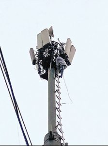 संत नगर। उपनगर के मछली मार्केट के पास स्थित लगे टेलीकॉम कंपनी जीयो के टावर पर सोमवार की शाम 6 बजे एक युवक नशे की हालत में ऊपर चढ़ गया और टावर को हाथ मुक्को से तोडऩे लगा। टावर पर चढ़े युवक को देख वहां तमाशा बीन भीड़ लग गई। सूचना मिलने पर पुलिस भी मौके पर पहुंच गई और जैसे तैसे समझा-बुझाकर युवक को पुलिस ने नीचे उतारा। पुलिस के मुताबिक युवक का नाम सन्तोष है वह इंदिरा नगर क्षेत्र का रहने वाला है। घटना के समय वह नशे में था।