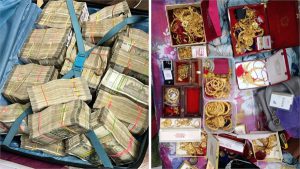 छापेमारी से जुड़ी तस्वीरों में साफ दिख रहा है कि ब्रीफकेस और बैगों में 500-500 रुपये के नोटों की कई गड्डियां भरी पड़ी हैं. इसके अलावा, बड़ी मात्रा में सोने की ज्वैलरी भी बरामद हुई है.