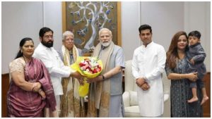 मुंबई। महाराष्ट्र के मुख्यमंत्री एकनाथ शिंदे आज परिवार समेत प्रधानमंत्री नरेंद्र मोदी से मुलाकात करने पहुंचे। इस दौरान उनके साथ उनके पिता संभाजी शिंदे, पत्नी लता शिंदे, सांसद और बेटा श्रीकांत शिंदे, बहु रुषाली शिंदे और पोता रुद्राक्ष मौजूद रहे। पीएम नरेंद्र मोदी से मुलाकात के बाद एकनाथ शिंदे गृहमंत्री अमित शाह से मुलाकात करने वाले हैं। कल मुख्यमंत्री एककनाथ शिंदे अपने एक मित्र के पारिवारिक कार्यक्रम में भाग लेने के लिए दिल्ली आए थे। इसी कड़ी में उन्होंने आज पीएम मोदी से मुलाकत की।