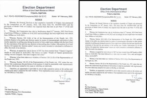 मुख्य निर्वाचन अधिकारी कार्यालय ने आदर्श आचार संहिता लागू होने के बाद त्रिपुरा कांग्रेस और भाजपा को उनके अधिकारिक हैंडल से वोट की अपील करने के ट्वीट के संबंध में नोटिस जारी कर जवाब मांगा है।
